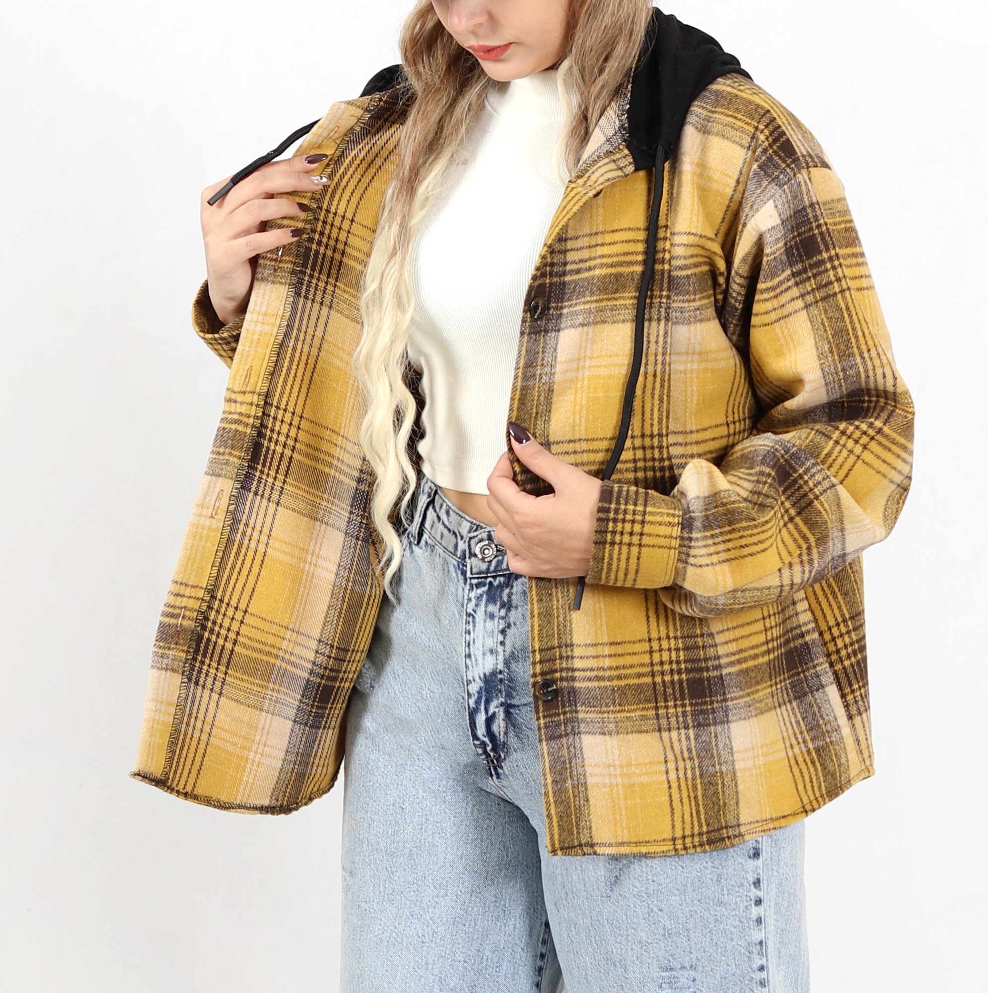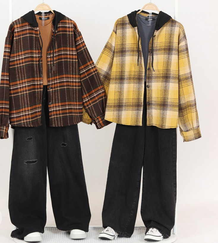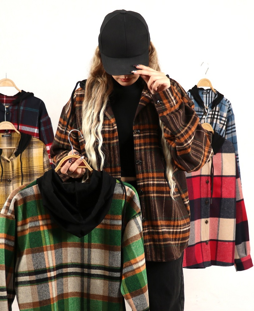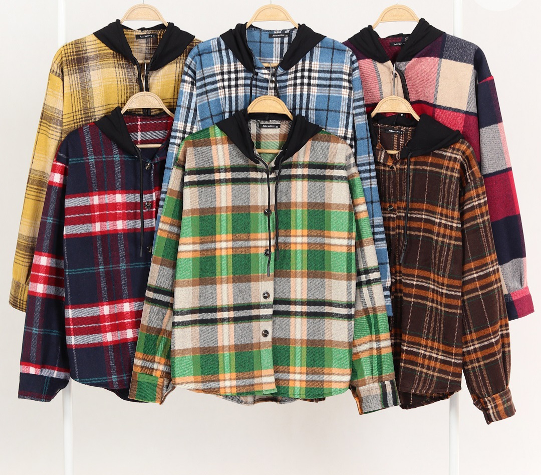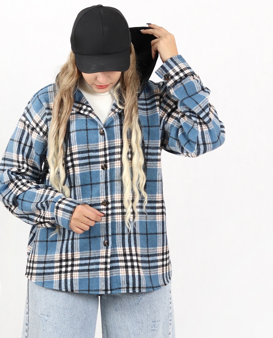شکت چهارخونه پشمی کلاه دار زنانه
