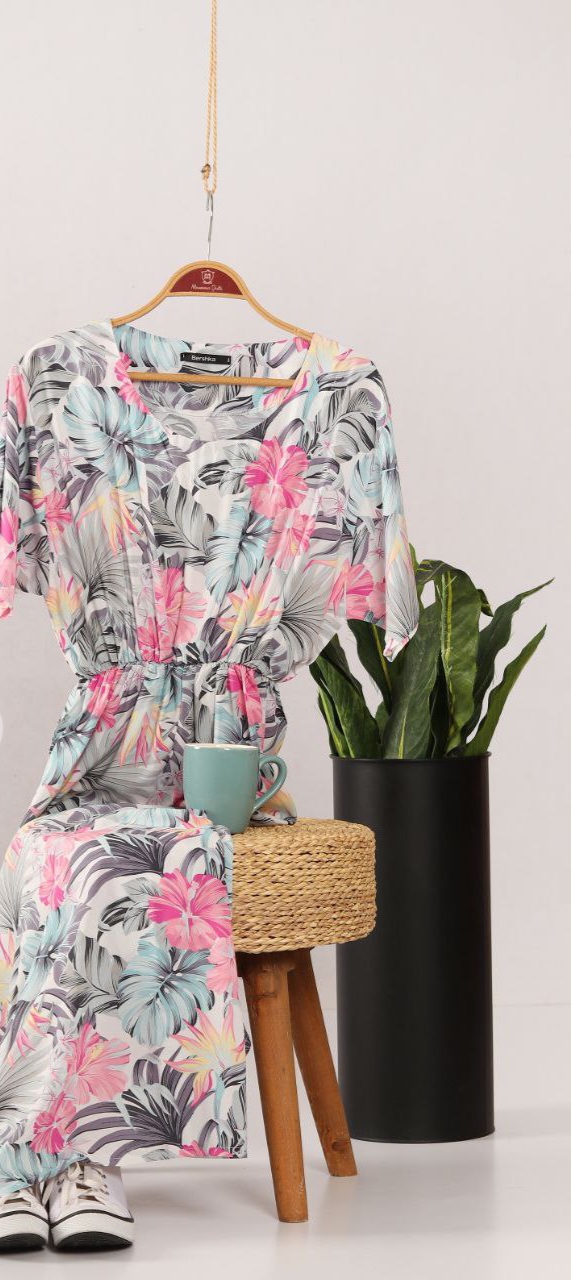 ساحلی زنانه نخی آستین کوتاه کمر کش