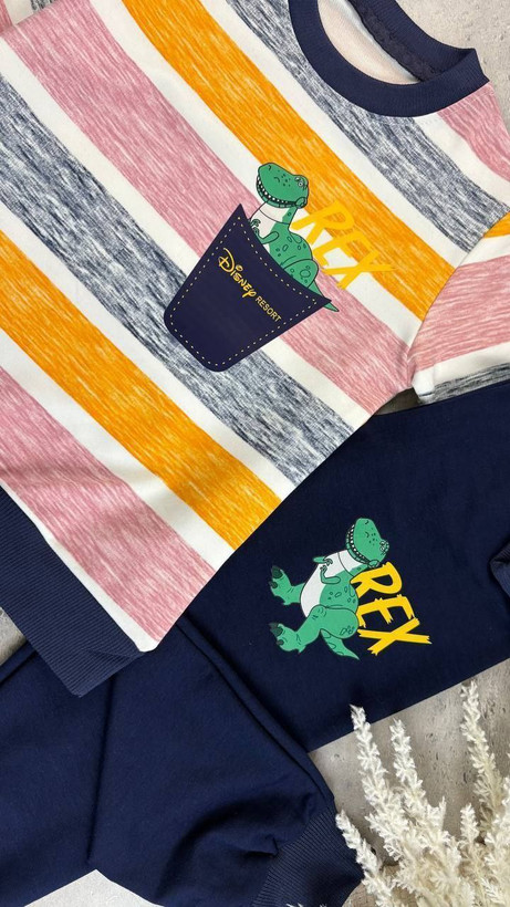 ست بلوز و شلوار راه راه طرح trex پنبه دورس سایز۵۵