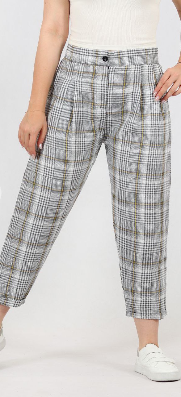 شلوار مزونی سایزxl چهارخونه مام استایل پارچه نساجی دمپا پاکتی