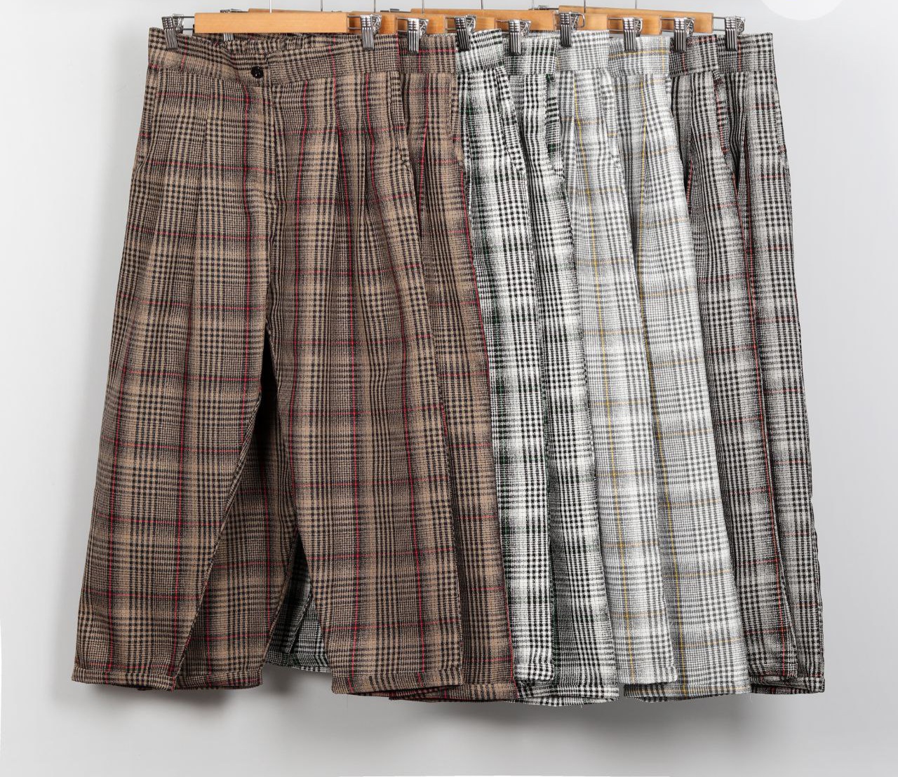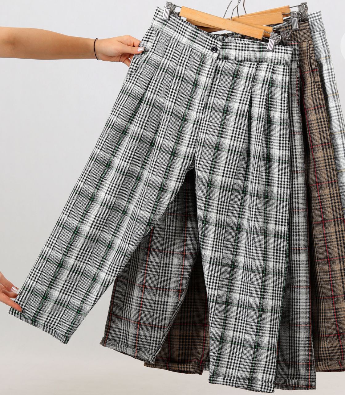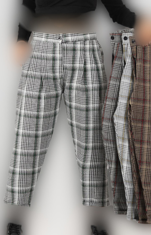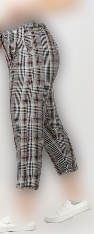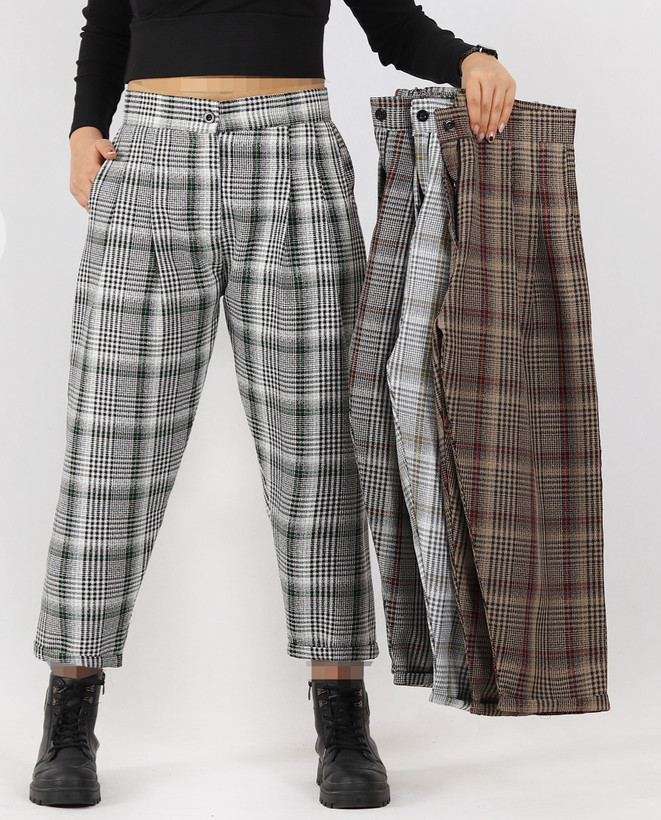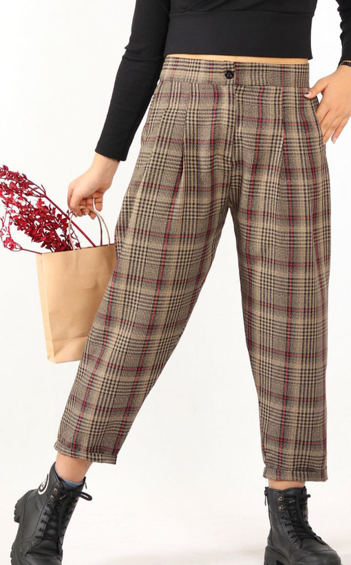 شلوار چهارخونه جنس پارچه نساجی ریما دمپا پاکتی پشت کمر کش