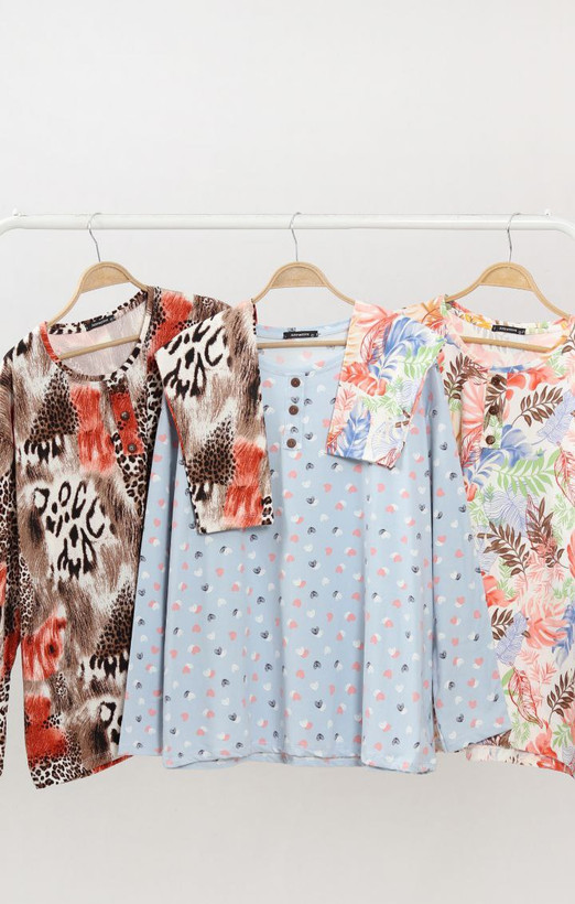 بلوز زنانه آستین دار سایز بزرگ جنس تیریکس پنبه اعلا لطیف